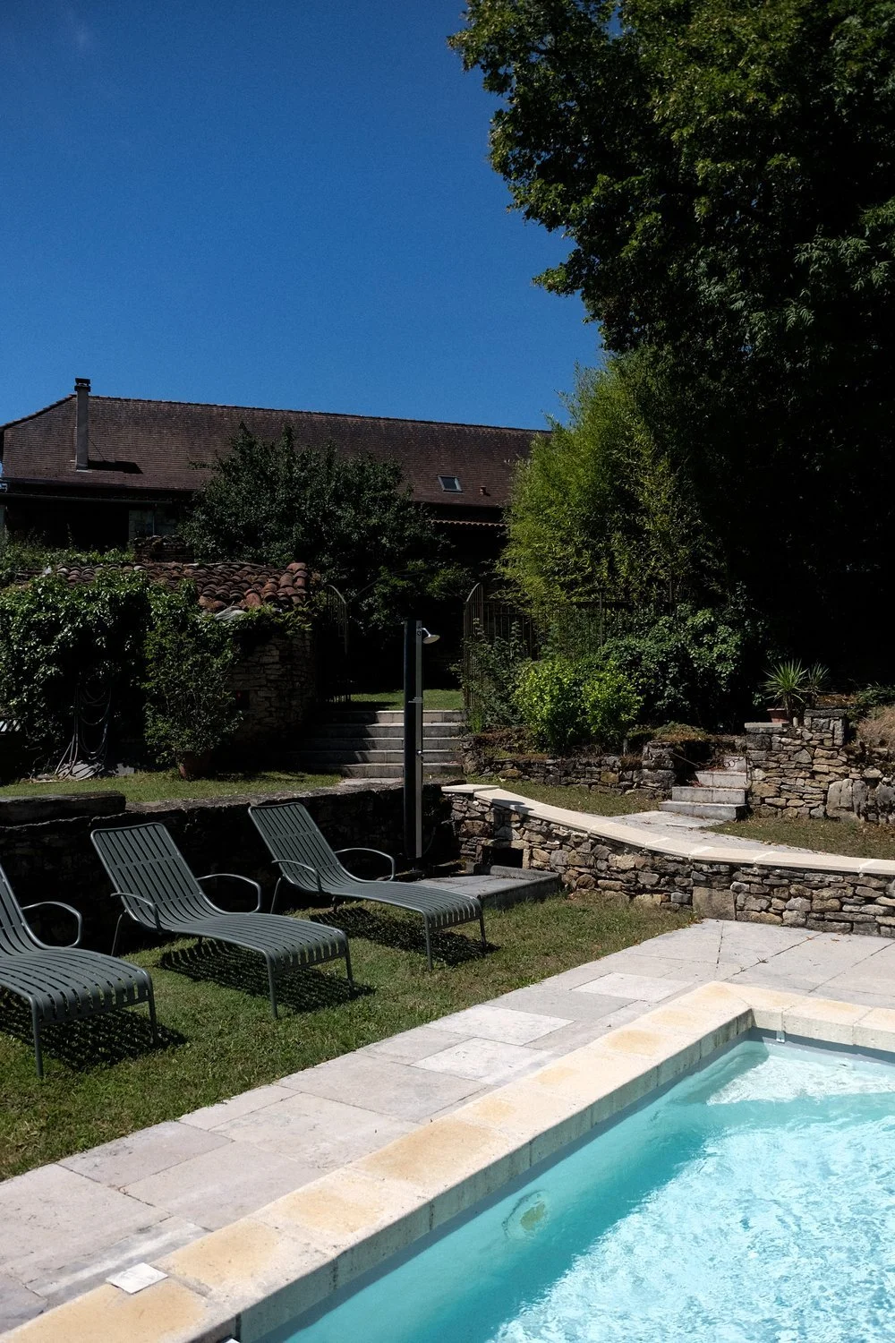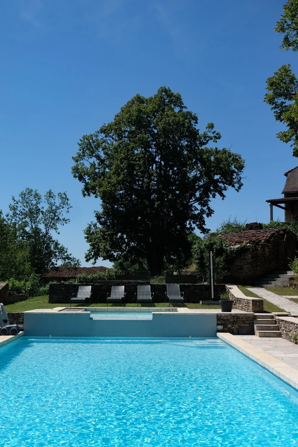 Piscine réservée exclusivement aux résidents. A double bassin avec débordement, chauffée et filtration sur sel (sans chlore).